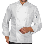 Giacca cuoco unisex a manica lunga slim extra light super stretch 97% Cotone 3% Spandex 136g. Ideale come divisa per uomo e donna da chef in cucina, ristorante o catering. Allacciatura classica con bottoni antipanico e taschino al petto e alla manica.
