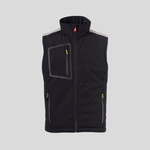Gilet soft-shell 3 strati, dalla media imbottitura (140g/m²), da uomo, chiusura tramite zip SBS con cursore in metallo "semi-auto lock" e tiretto personalizzato. Bande retroriflettente su spalle, fondoschiena. Tasca termosaldata sul petto, chiusa con zip spalmata. Due tasche laterali, chiuse con zip dal dettaglio retroriflettente. Tiretti fluorescenti. Due tasche interne, una sagomata con zip sul petto destro e una porta tablet con chiusura a strappo. Fondo regolabile con stopper personalizzati. Composizione 78% nylon 22% elastan 210gr. 8000 mm H₂O, WVT 5000 g/m² 24h.