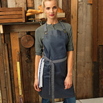 Grembiule con finitura in acrilico che dà un effetto cerato, crea anche una protezione impermeabile, il cordino al collo lungo 1m è regolabile con la fibbia, cuciture e tessuto jeans a contrasto, il modello propone dettagli funzionali come una tasca di grandi dimensioni applicata e una di servizio, 100% cotone, 350gr